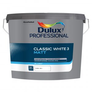 A Dulux PROFESSIONAL Classic White 3 fehér fal- és mennyezetfesték kiválóan alkalmas tetszetős és ellenálló bevonatok létrehozására beltéri falfelületeken. A termék gyorsan, könnyen felhordható és kivételesen magas teljesítményt biztosít kiváló fedőképességgel és nagyszerű alkalmazási tulajdonságokkal.
